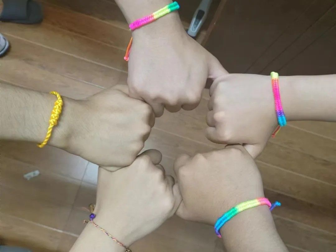 端午节佩戴五彩绳寓意平安、健康。节日前夕,中队指导员薛航老师集中采购了四百余条五彩绳分发至同学们手中,领取到五彩绳的同学们脸上都洋溢着笑容,将五彩绳佩戴在手上,并通过朋友圈等社交平台,“晒”出内心的那份喜悦与温暖,将祝福传递给其他的同学们。