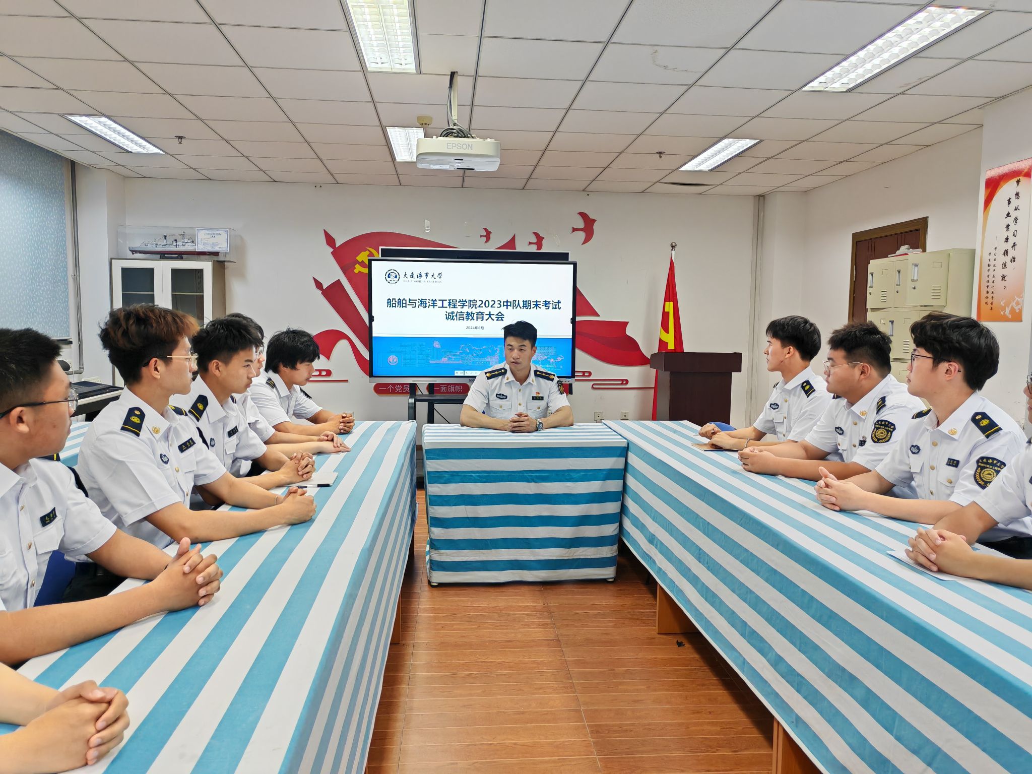 各中队指导员向同学们传达了学校党委学生工作部、教务处发布的加强学生考风考纪的相关通知及期末考试的重要提醒通知,同时又带领同学们一同学习了《8455新葡萄场网站学生违纪处分办法》、《8455新葡萄场网站课程考核工作管理规定》以及《8455新葡萄场网站学士学位授予工作实施办法》;各中队提醒同学们要按时考试,不要贪图一时的便利而违反诚信原则,并向同学们明确说明考试作弊的严重后果,提醒同学们不要心存侥幸,一定要杜绝作弊事件发生。