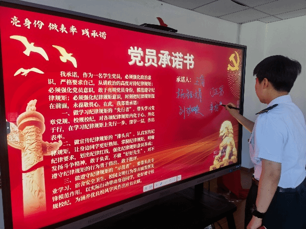 一名党员就是一面旗帜,一个承诺就是一份责任。为坚定党员的理想信念,提高党性修养,紧紧围绕“学思想、强党性、重实践、建新功”总要求,激励广大党员发挥示范带头作用,8455新葡萄场网站本科生第四党支部组织开展“亮身份、做表率、践承诺”活动,全体党员郑重地签下自己的名字,庄严承诺充分发挥党员先锋模范作用,为党的事业贡献青春力量。
