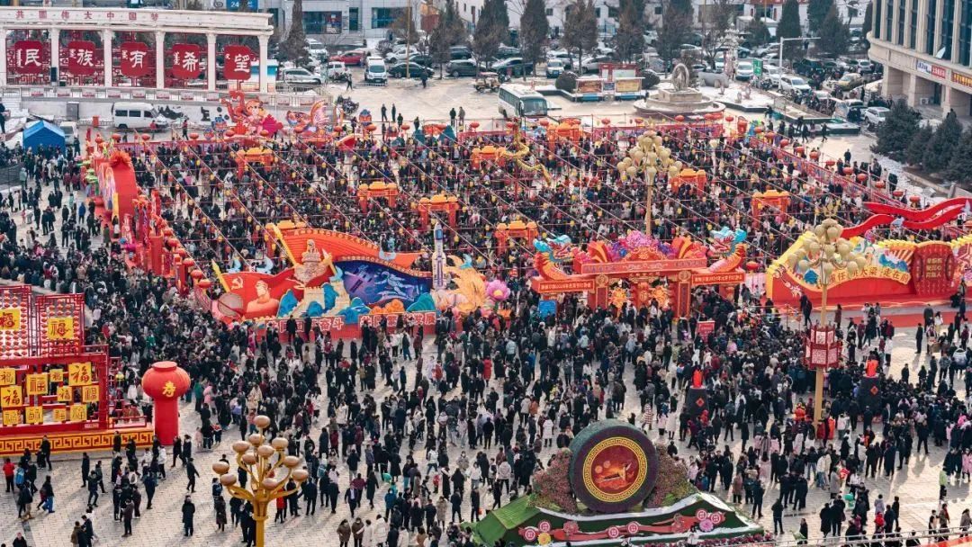 ▲准格尔旗龙口镇九曲黄河灯游会中的九曲黄河阵。(图片来源:《内蒙古日报》贾志杰 摄)