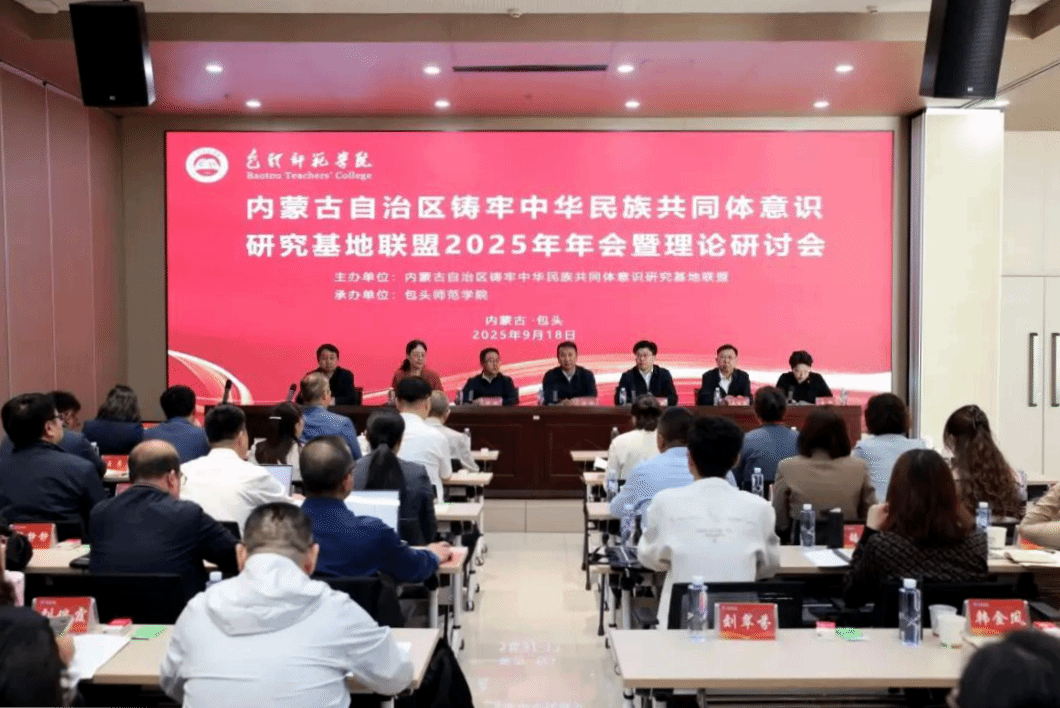 本网讯 9月18日,内蒙古自治区铸牢中华民族共同体意识研究基地联盟2025年年会暨理论研讨会在包头师范学院召开。包头师范学院党委书记、自治区铸牢中华民族共同体意识研究基地联盟副理事长韩伟新,自治区民委党组成员、副主任云冰,今年会党委副书记、自治区铸牢中华民族共同体意识研究基地联盟秘书长斯钦出席会议并致辞。包头师范学院党委副书记、自治区铸牢中华民族共同体意识研究基地联盟副秘书长史瑜主持会议。