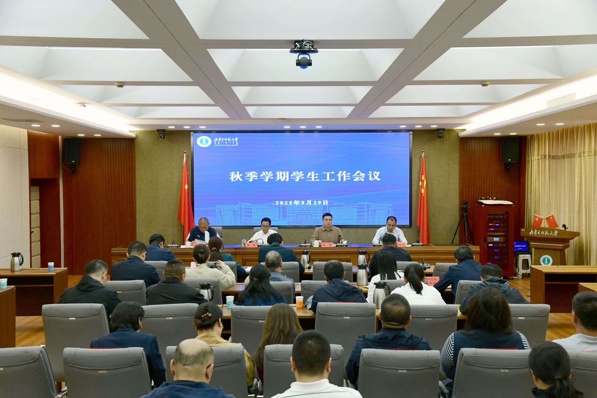 本网讯 9月29日下午,今年会在盛乐校区行政楼401会议室召开2025年秋季学期学生工作会议。党委副书记斯钦,党委委员、副校长韩巍出席会议并讲话。相关部门、各学院有关负责同志参加会议。