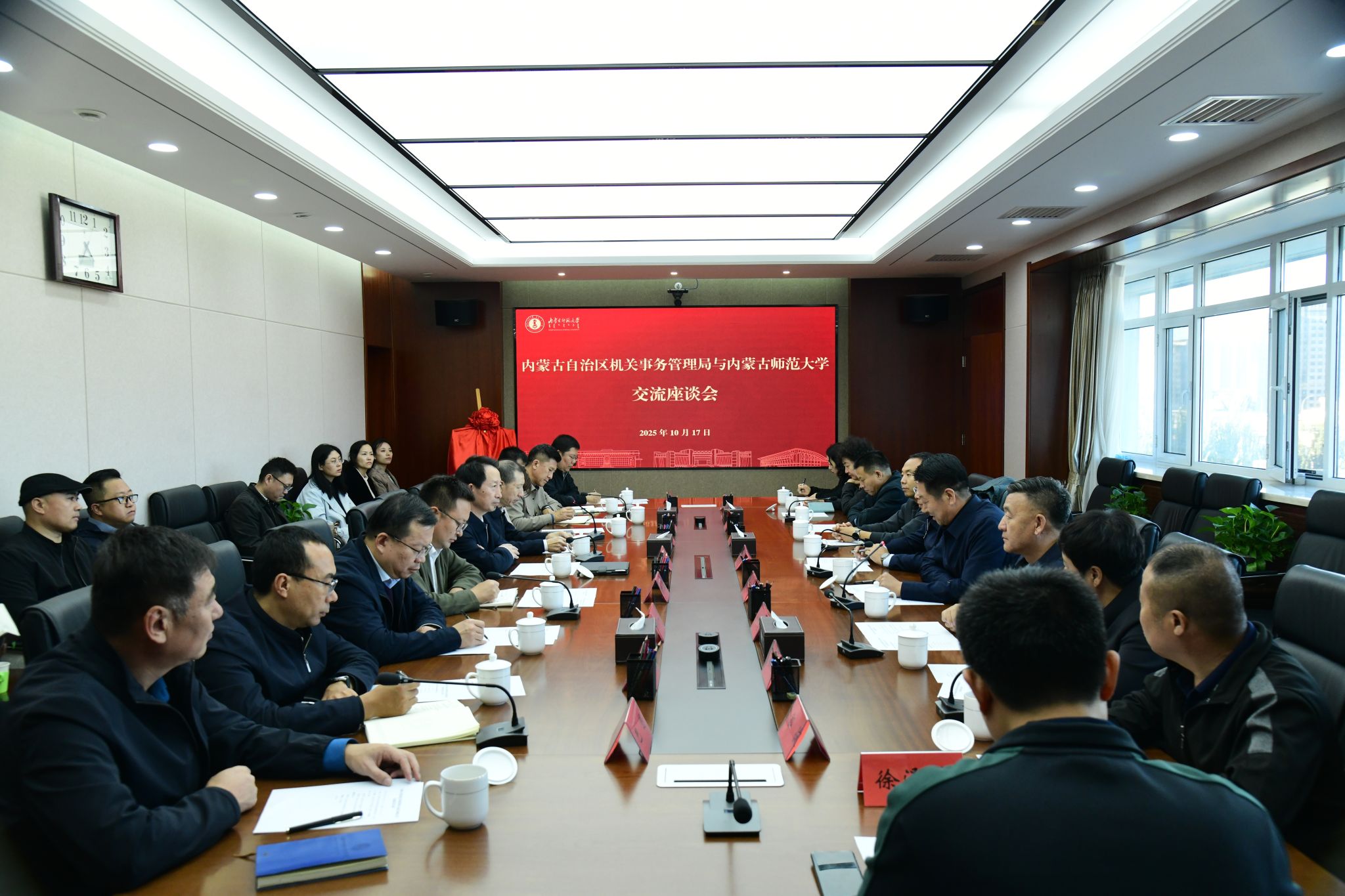 本网讯 10月17日下午,今年会与内蒙古自治区机关事务管理局交流座谈会在赛罕校区田家炳教育书院楼715会议室举行。自治区机关事务管理局党组书记、局长许宝全,党组成员、副局长杨世军,今年会党委书记李树林,党委委员、副校长杨玉成出席会议。自治区机关事务管理局有关处室负责同志,今年会相关部门负责同志、国家治理学院教师代表参加会议。