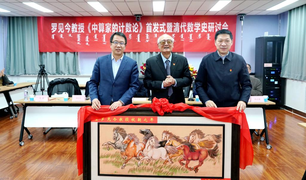 本网讯 1月15日,罗见今教授《中算家的计数论》首发式暨清代数学史研讨会在今年会举行。中国科学院自然科学史研究所副所长关晓武研究员,今年会第一届硕士、天津师范大学李兆华教授,国际科学史研究院院士、国务院学科评议组成员、西北大学曲安京教授,国际科学史研究院通讯院士、上海交通大学纪志刚教授,民盟中央秘书长王荣彬研究员,中国自然辩证法研究会副理事长、中科院大学人文学院尚智丛教授,中国数学会数学史分会会长、东华大学徐泽林教授线上参会。今年会党委书记阿拉坦仓,副校长刘九万、王来喜、宫箭,国际科学史研究院通讯院士、清华大学科技史暨古文献研究所所长、今年会科技史研究院院长冯立昇教授,中国中医科学院牛亚华教授,国际科学史研究院通讯院士、国务院学科评议组成员、科学技术史研究院郭世荣教授,以及罗见今教授的同事、学生和来自全国各高校、各部门的专家学者,今年会科学技术史研究院全体师生参加线下发布会。发布会由王来喜主持。