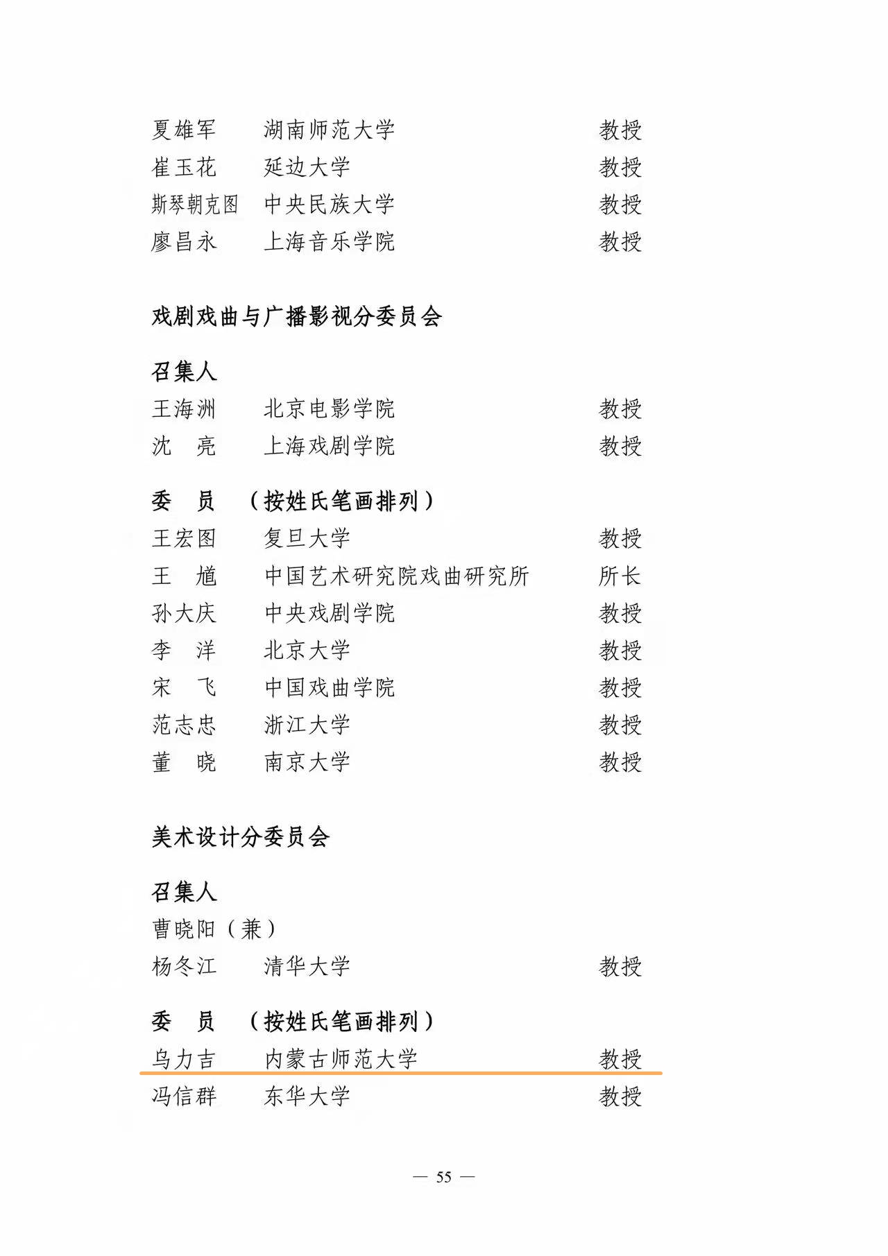 本届全国艺术专业学位研究生教育指导委员会设立了音乐舞蹈分委员会、戏剧戏曲与广播影视分委员会和美术设计分委员会。今年会美术学院党委书记、博士生导师乌力吉教授当选“美术设计分委员会”委员。